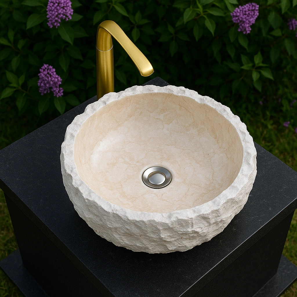 Tamamen doğal taştan üretilen lavabo, her bir üründe farklı damar ve yüzey dokusuna sahip olup her lavabo kendine özgüdür. El işçiliği ile şekillendirilen dış yüzey, doğal ve otantik bir estetik sunarken, iç yüzey günlük kullanıma uygun şekilde düzgün ve kolay temizlenebilir yapıdadır.