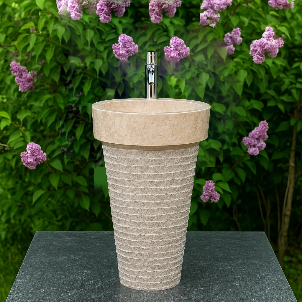 Vortex , mimari form anlayışıyla şekillendirilmiş özgün bir doğal taş lavabo tasarımıdır. Konik gövdesi üzerinde yer alan yatay dokular, taşın doğal karakterini ön plana çıkarırken ürüne güçlü bir hacim algısı kazandırır.